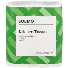 Amazon Brand - Solimo 2 Ply Kitchen Tissue/Towel Paper Roll - 2 Rolls (60 Pulls Per Roll)